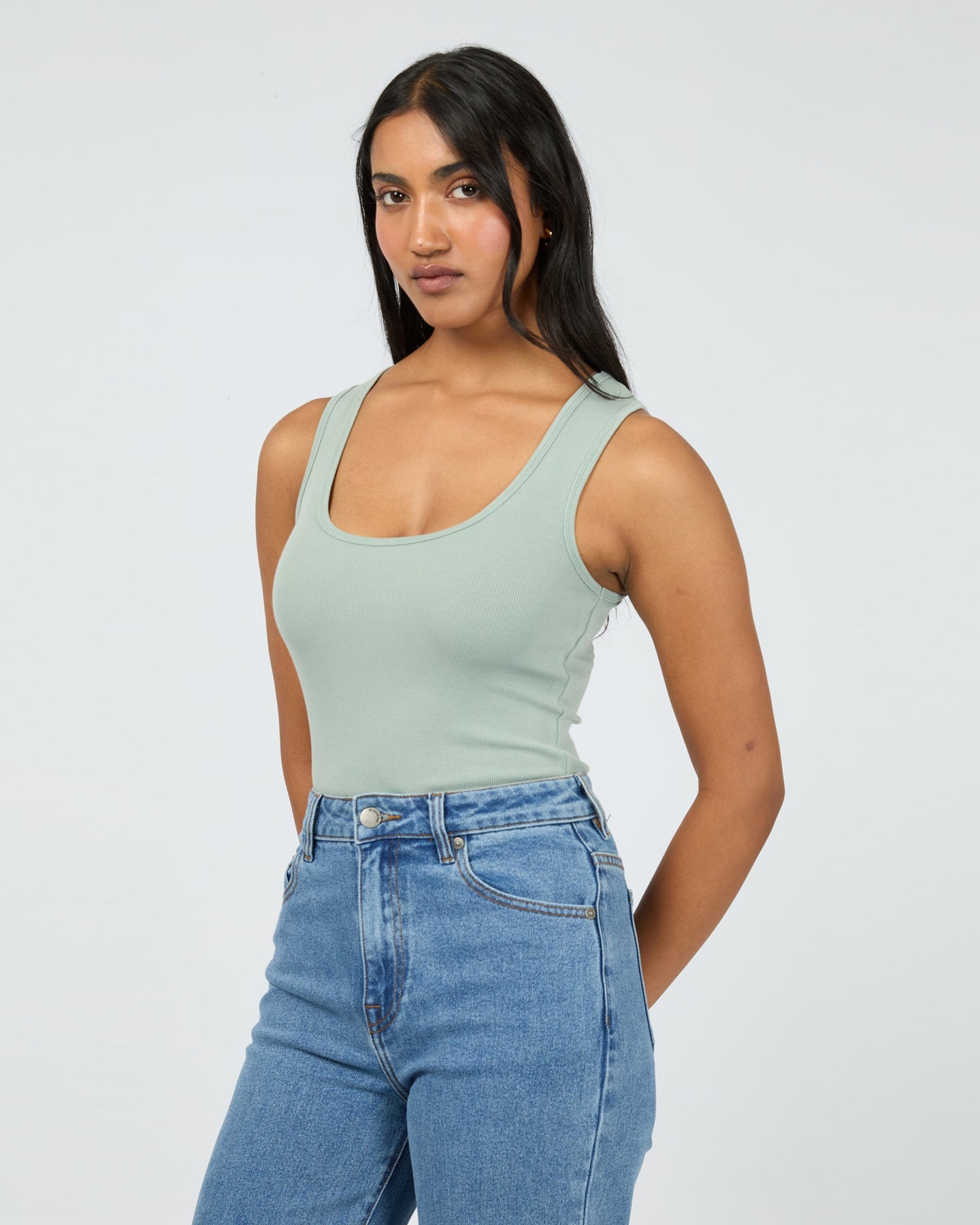 The Washed Rib Scoop Neck Tank features a flattering scoop neckline and a soft washed rib fabric in charcoal, offering both comfort and style. Perfect for layering or wearing on its own, it provides a sleek fit that moves with you throughout the day.