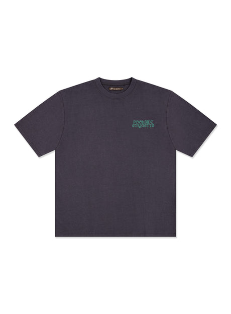The Legacy Tee in black. Light puff print front & back logos. Thicker neckline on relaxed fit tee with thicker neckline and vintage wash.