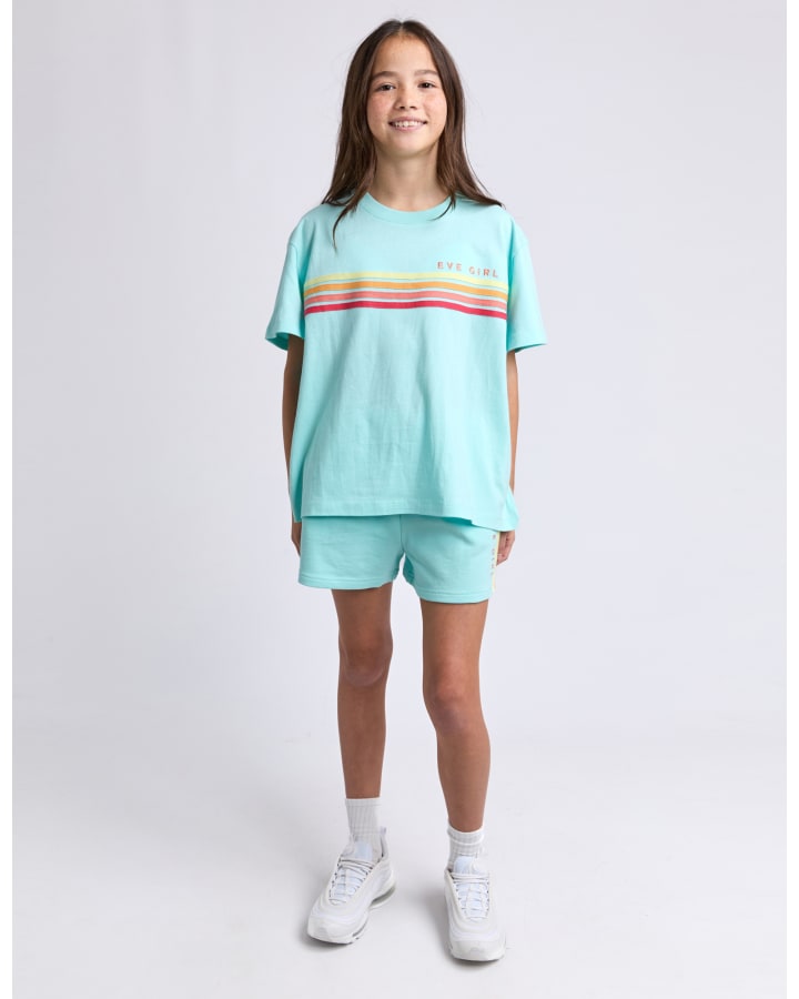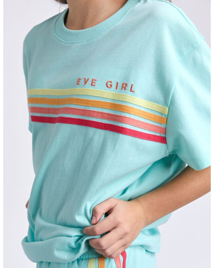 The Retro Tee by Eve Girl is the perfect summer tee. Crafted from a soft cotton jersey fabrication, this style features contrast taping and embroidery along the chest on an oversized tee shape. Available in 3 colourways, this tee is perfect for pairing back with the matching short for a sporty everyday look.
