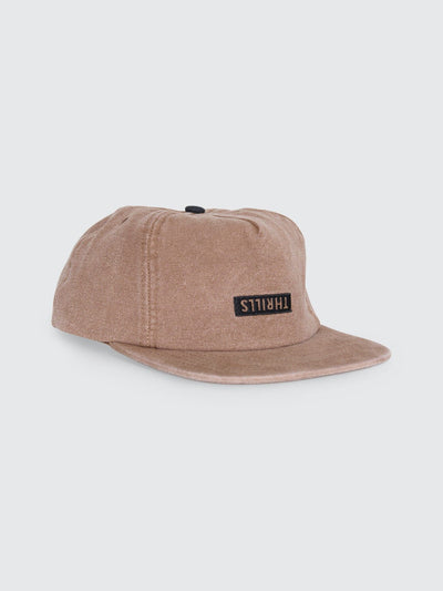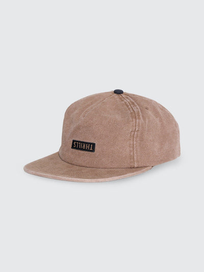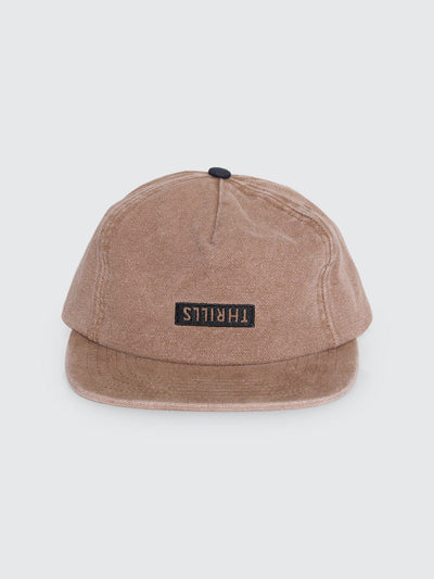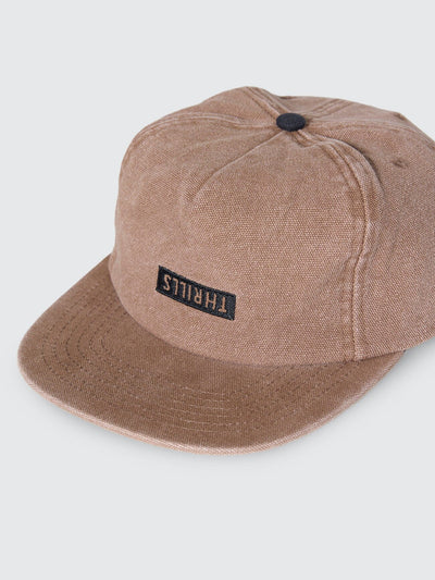 Utility styling with a clean street finish, the Superior Thrills 5 Panel Cap in Trader Brown delivers superior comfort and style. Made from hard-wearing cotton duck canvas, it holds its shape and wears in beautifully over time. Featuring tonal embroidery, a flat brim, and an adjustable back strap, this men's streetwear cap is built for daily wear and pairs effortlessly with your off-duty ensembles.