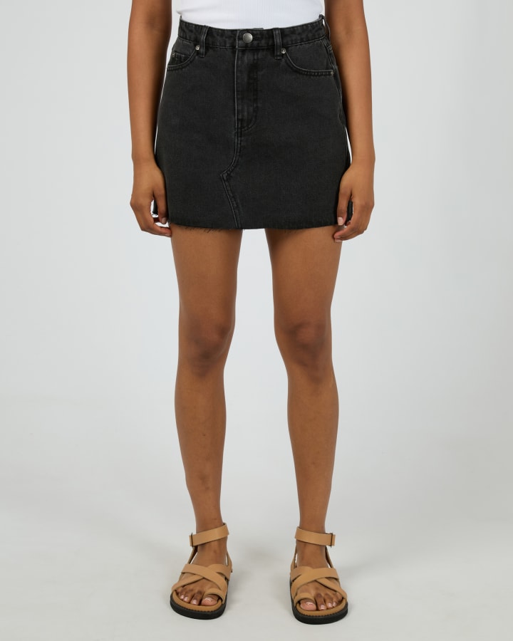 Meet your new go-to, our Margot Denim Mini Skirt, designed for effortless style and all-day wear. Made from durable 100% cotton rigid denim, this high-waisted staple features a timeless five-pocket design, raw edge hem, and a flattering silhouette that never goes out of style. The structured fit hugs your waist and hips in all the right places, while the raw-cut hem adds a touch of modern edge. Perfect for dressing up or down, this versatile mini skirt pairs seamlessly with everything from tucked-in tees to oversized sweaters.