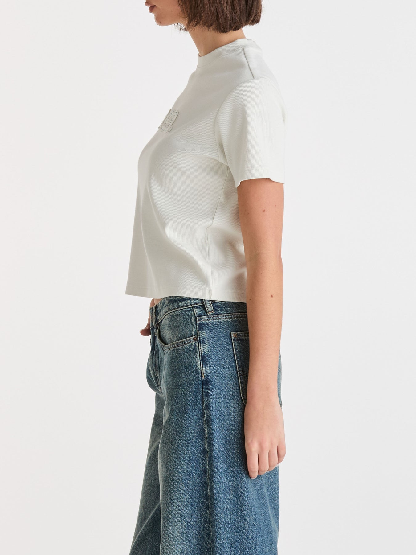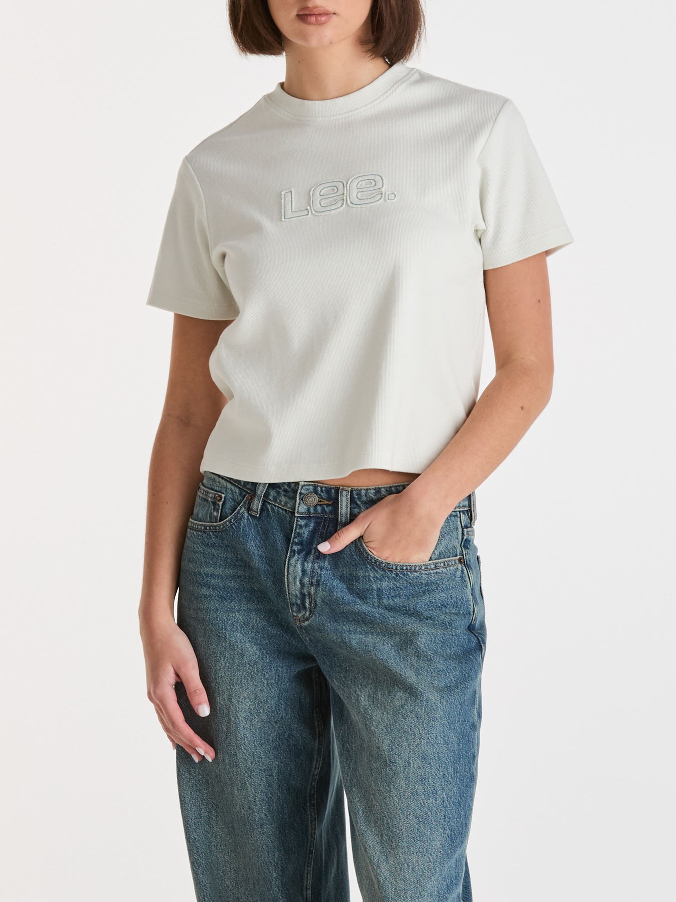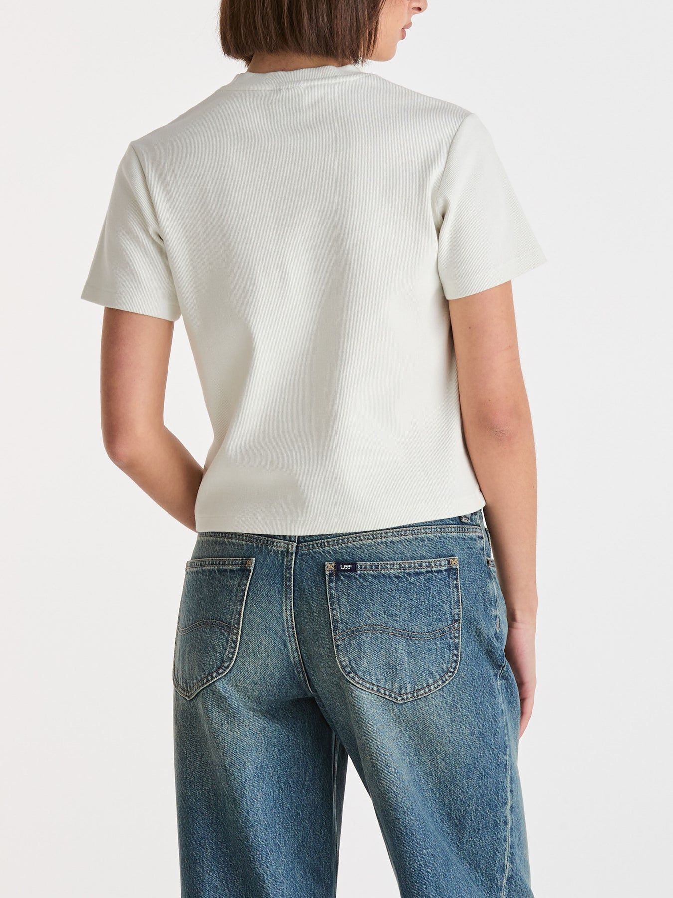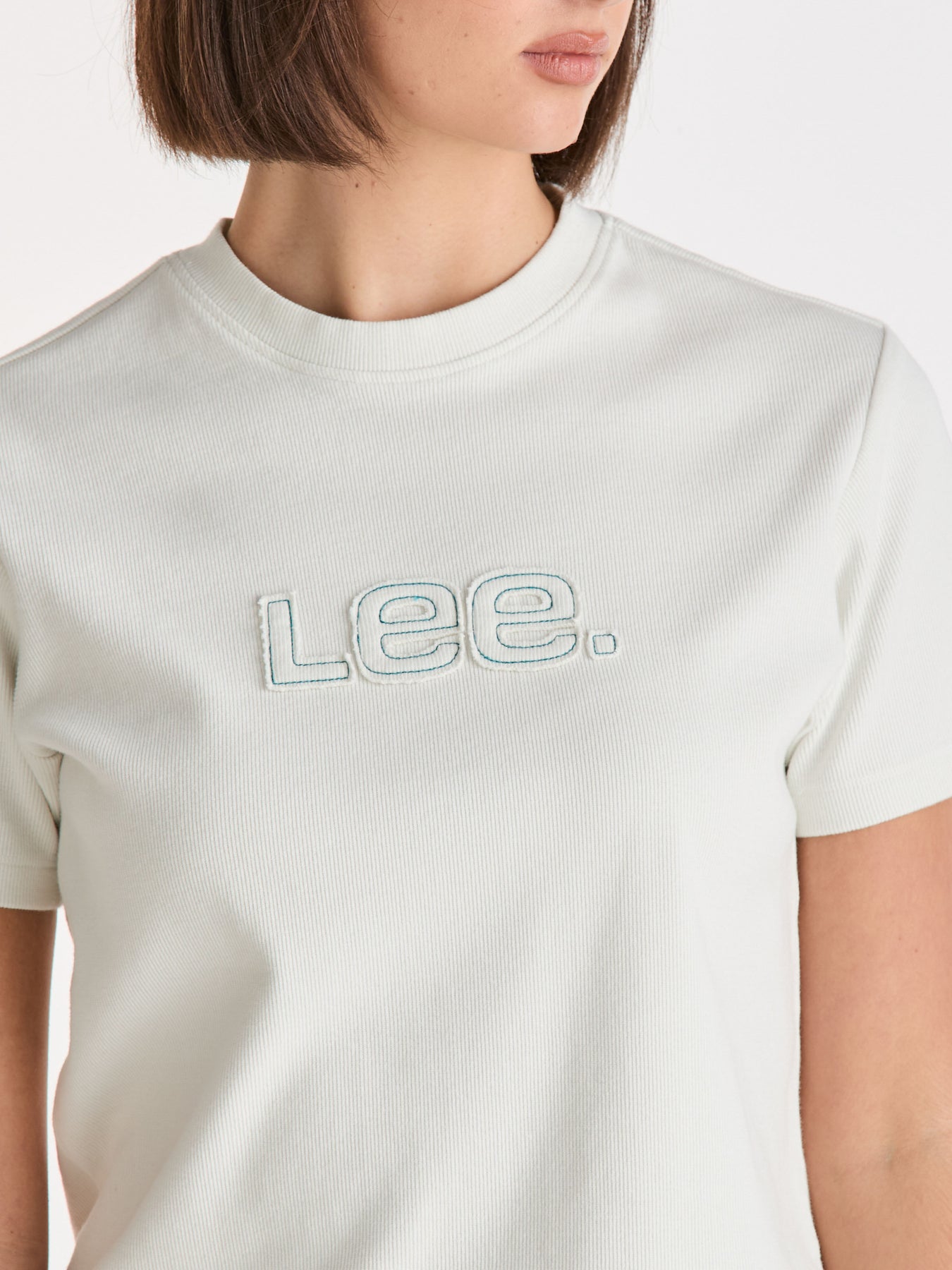The Undone Shrunken Rib Tee is the newest addition to Lee's tee fits. Crafted in a recycled cotton ribbed fabric. Featuring an applique Lee chest logo, sewn in a tonal overdye with contrast stitching.