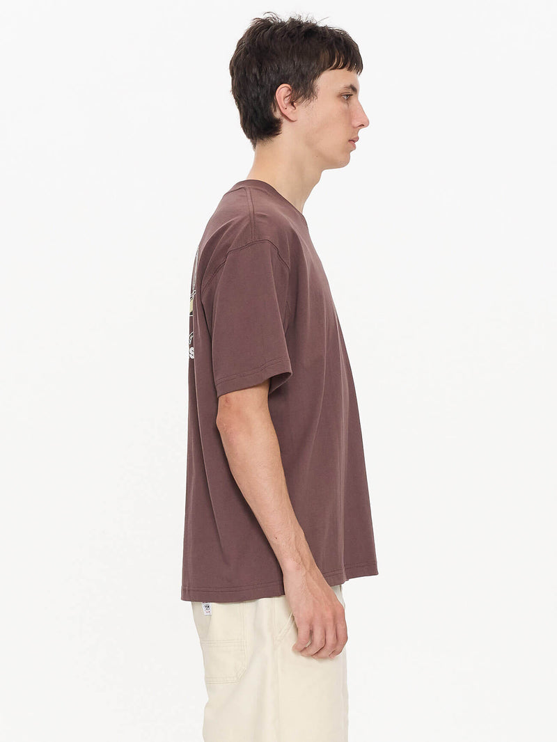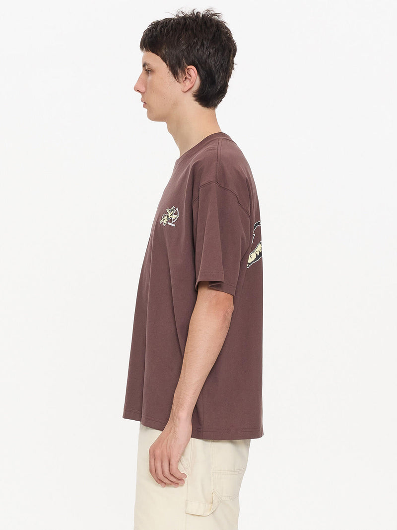 The Cherub Tee in Dark Choc keeps it simple yet iconic with Worships signature cherub graphic embroidery. Made from midweight cotton dry hand jersey, this streetwear t shirt Australia style features a relaxed, roomy fit with a ribbed neckline and dropped shoulders for an effortless finish. The rich, dark brown colourway leans into vintage tones, giving it versatility across seasons. Wear it back with baggy denim shorts for a laidback Y2K edge or layer under an open shirt for extra depth.