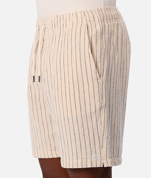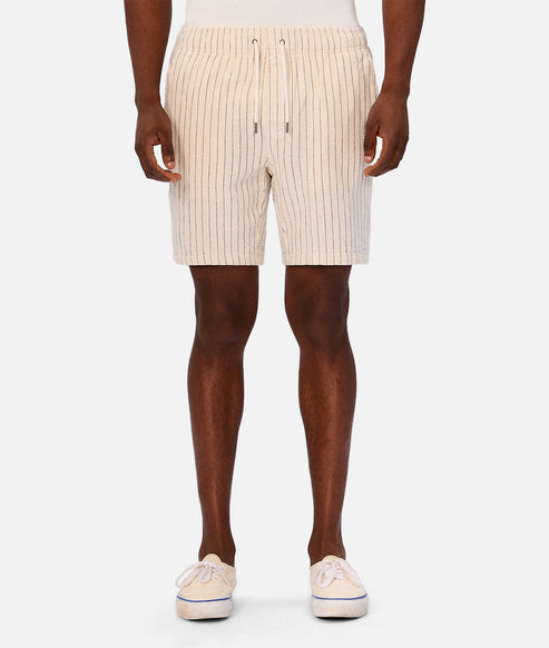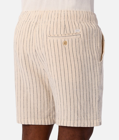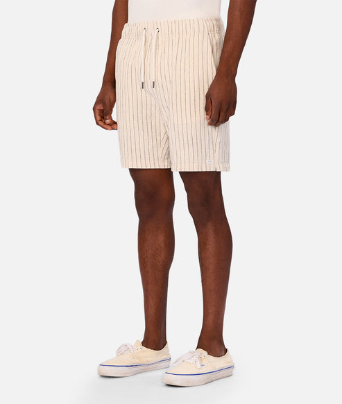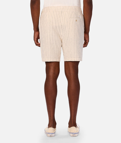 Crafted from a breathable cotton-linen blend with a textured woven construction, The Monterrey Short will keep you comfortable all day. The elastic waistband with drawstring ensures a flexible fit, while a subtle pinstripe design adds a touch of modern sophistication. Practical side pockets and a button-closure back pocket complete the look, making them perfect for casual city strolls or weekend getaways.