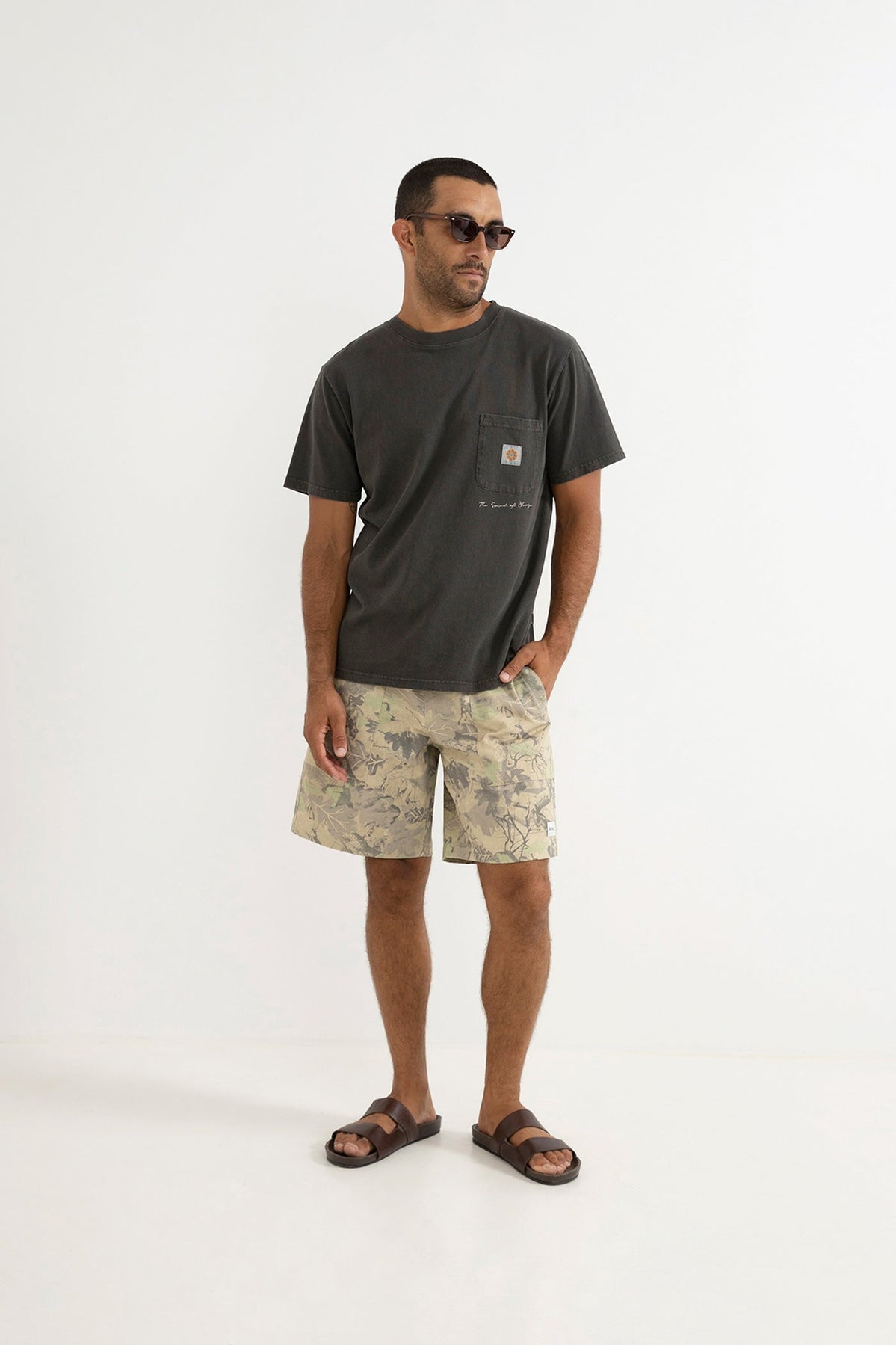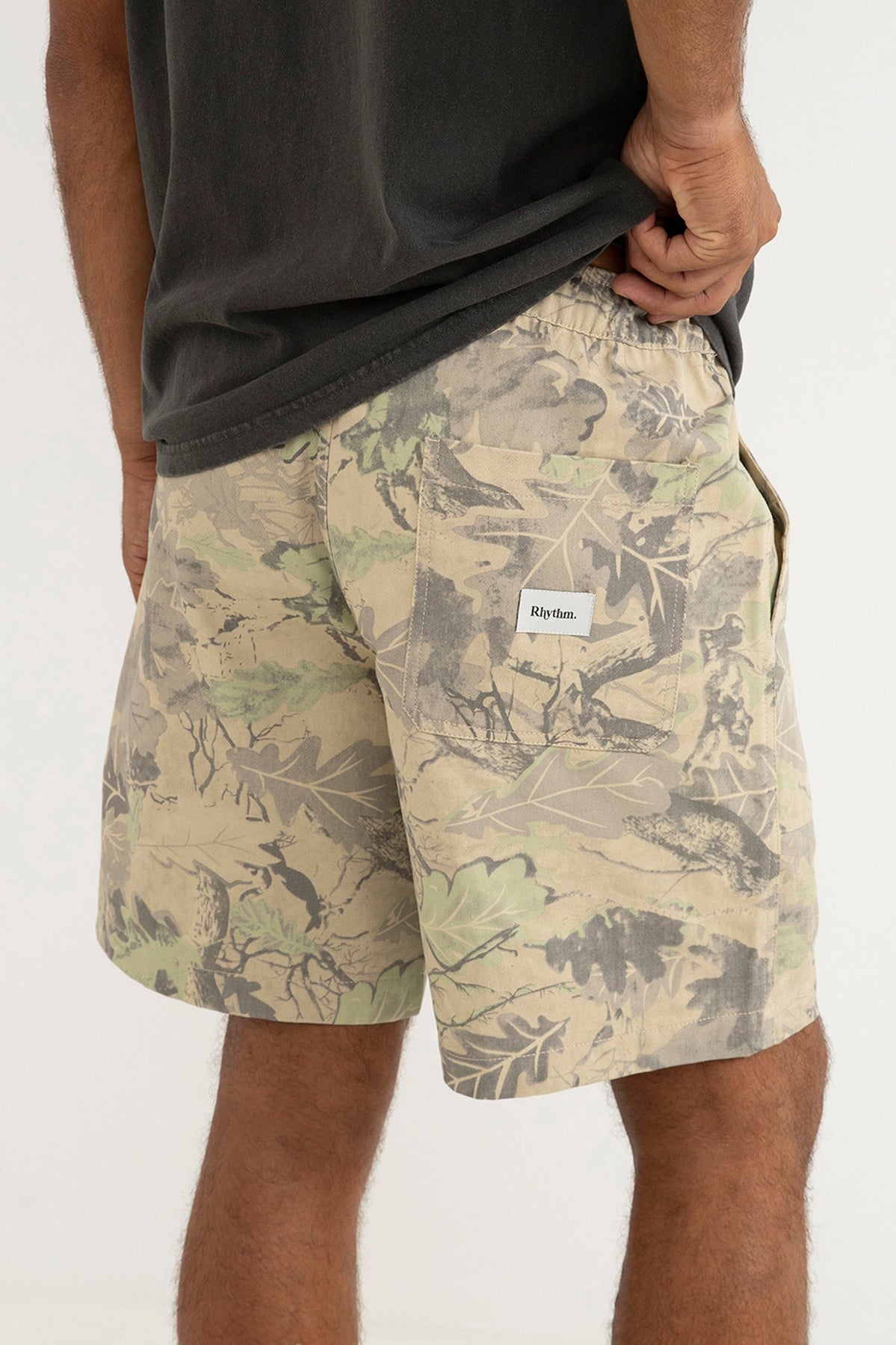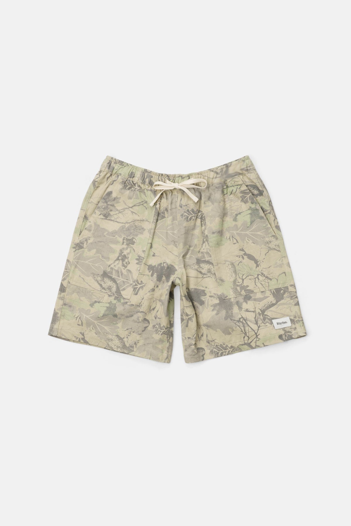Designed for those who move between surf and street, the Tree Camo Jam in a bold custom print features a baggy 19-inch outseam with a washed finish for a vintage hand feel. A comfortable elastic waistband, cotton drawstring, and functional pockets complete the design.