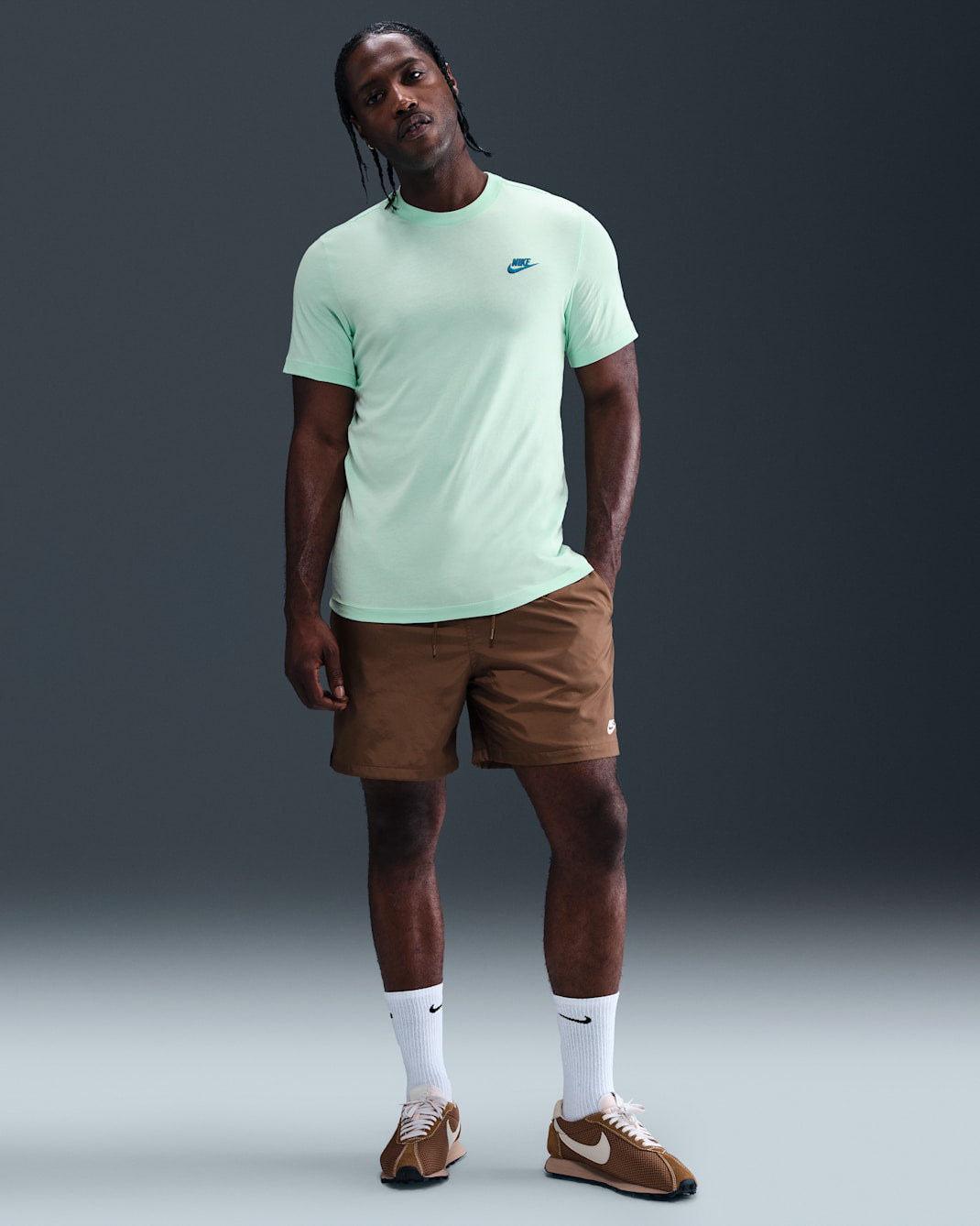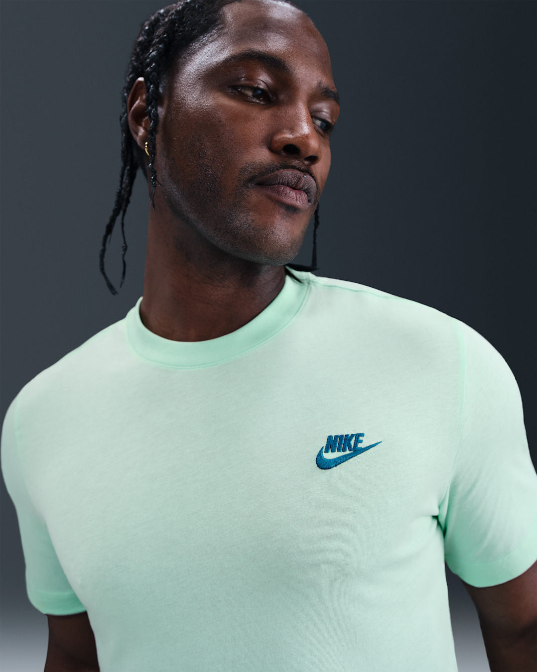 The Nike Sportswear Club T-Shirt is made with our everyday cotton fabric and a classic fit, for a familiar feel right out of the bag. An embroidered Futura logo on the chest provides a signature Nike look.
