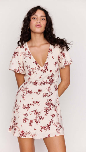 Soft, romantic and effortlessly flattering, the Anaise Cream Floral Toile Mini Dress is crafted from viscose crepe, offering a lightweight feel with a fluid drape that moves beautifully with the body. Designed with a plunging V neckline, delicate flutter sleeves and a softly skimming silhouette, it's finished in a timeless toile-inspired print for an elevated take on everyday dressing.