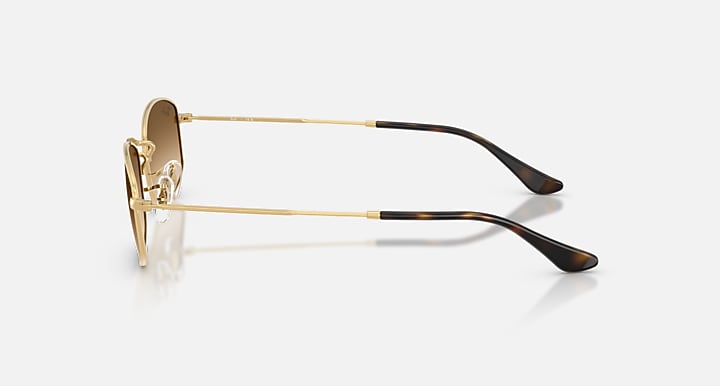 Ray-Ban RB3832 sunglasses are a modern take on the classic aviator style, featuring a metal frame crafted in arista gold and an irregular shape for a contemporary edge. The clear gradient brown lenses offer 100% UV protection to keep you stylish all day long.