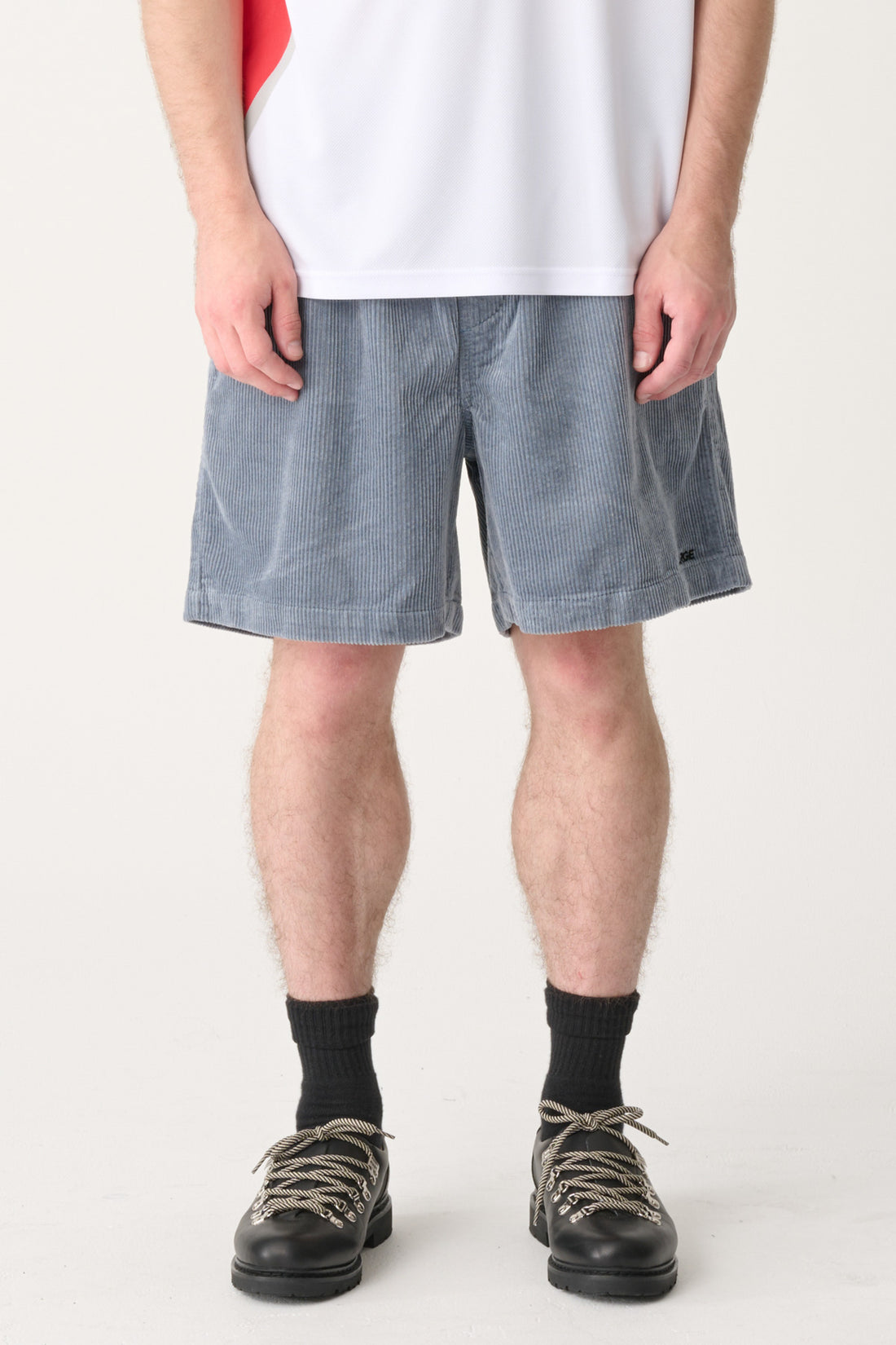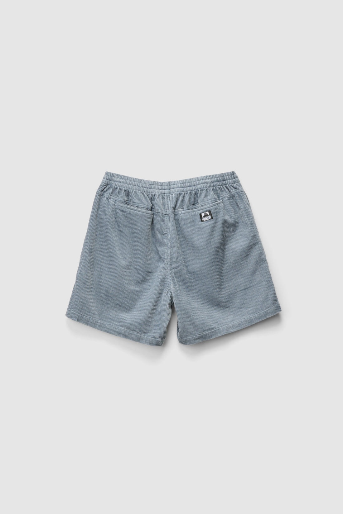 The 91 Wide Cord Beachshort in Dusty Ice is an elasticated waist short with an internal drawcord.