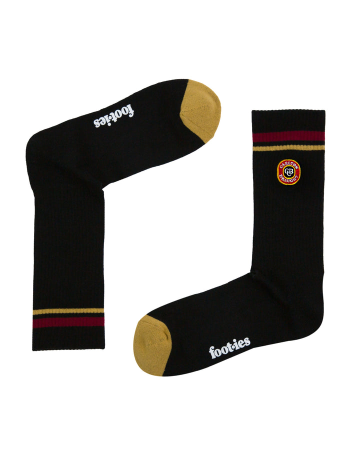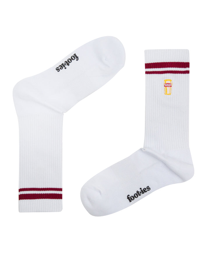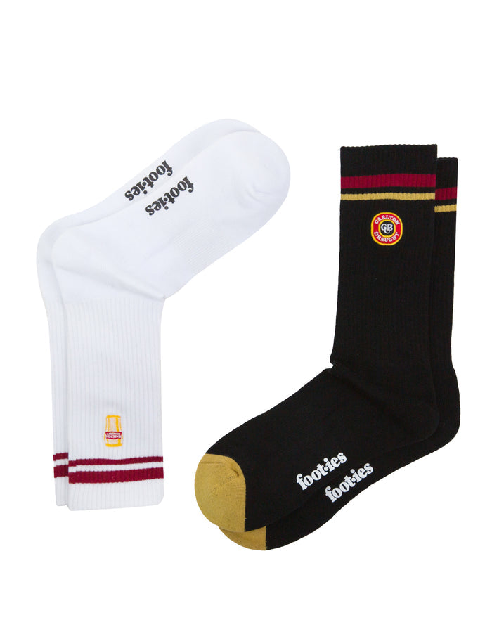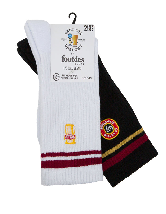 Whether you're knocking off early or kicking back on the weekend, these officially licensed Carlton Draught sneaker socks bring pub spirit to your everyday rotation. Featuring the iconic pint logo stitched with pride, this two-pack delivers classic comfort with a crisp finish. From the bar to the backyard, these socks are brewed for legends. Grab a pair, raise a foot, and rep the pint.