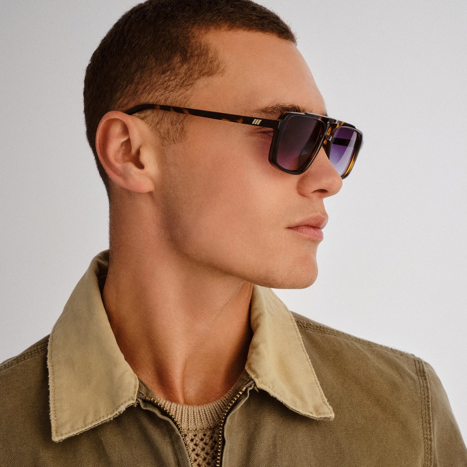 Designed for impact and comfort, LE GARS redefines the aviator silhouette with a bold, structured shape tailored for broader face shapes. This wearable, unisex frame is finished with discreet classic Le Specs flagstripe hardware to its fine temples.