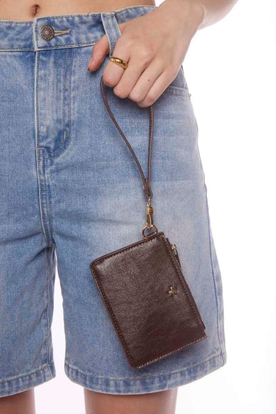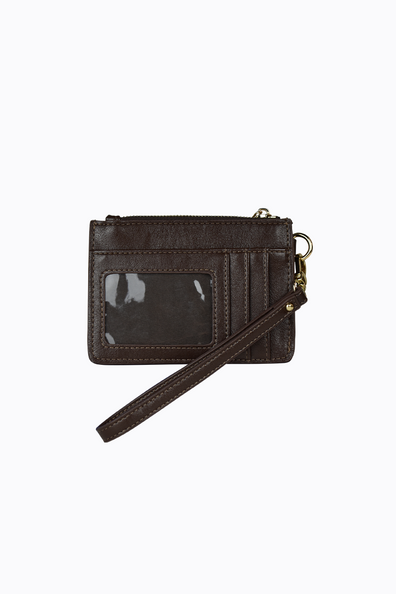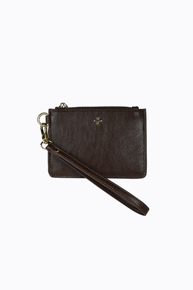 Kaia is a versatile card wallet with a secure zippered main compartment, featuring a slip pocket, three card slots and a clear ID window. The wallet also includes a detachable wrist strap and a hidden key ring inside, perfect for attaching to a bag, or belt loop for on-the-go functionality.