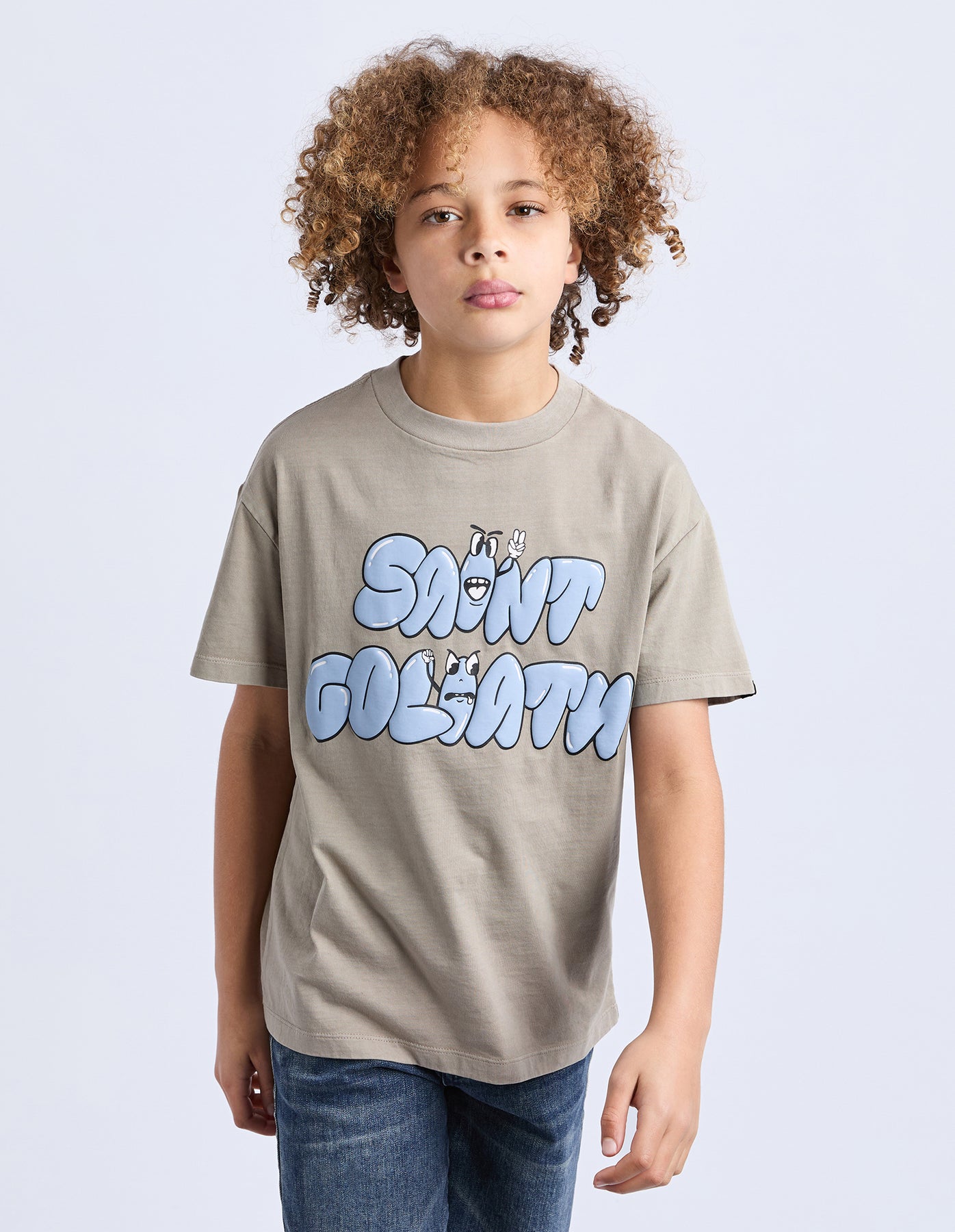 The Streets Tee is crafted from 100% cotton jersey and designed with our relaxed fit for a slightly oversized look. A bold St. Goliath graphic spans the front, drawing inspiration from modern graffiti culture and blending standard and puff printing techniques. Finished with twin-stitch turned hems and an all-over garment wash, it delivers a soft, comfortable feel from the very first wear.
