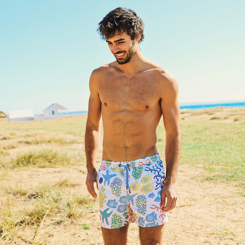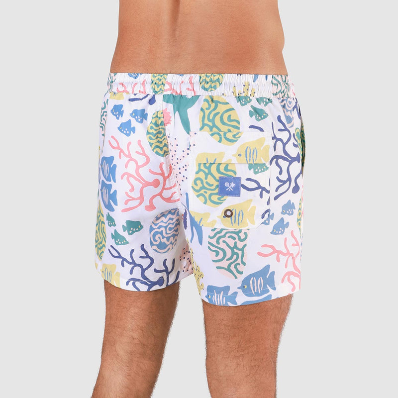 Make a splash in the Reef Ruckus Mens Swim Shorts in White. Crafted from quick-dry polyester with an elastic waistband, these relaxed-fit shorts feature tonal stripes and side pockets for practical summer style. Perfect for beach days, poolside hangs or weekend adventures, they offer comfort and easy movement for all your sunny escapades. Pair with a tee or tank for laidback, sporty summer vibes.